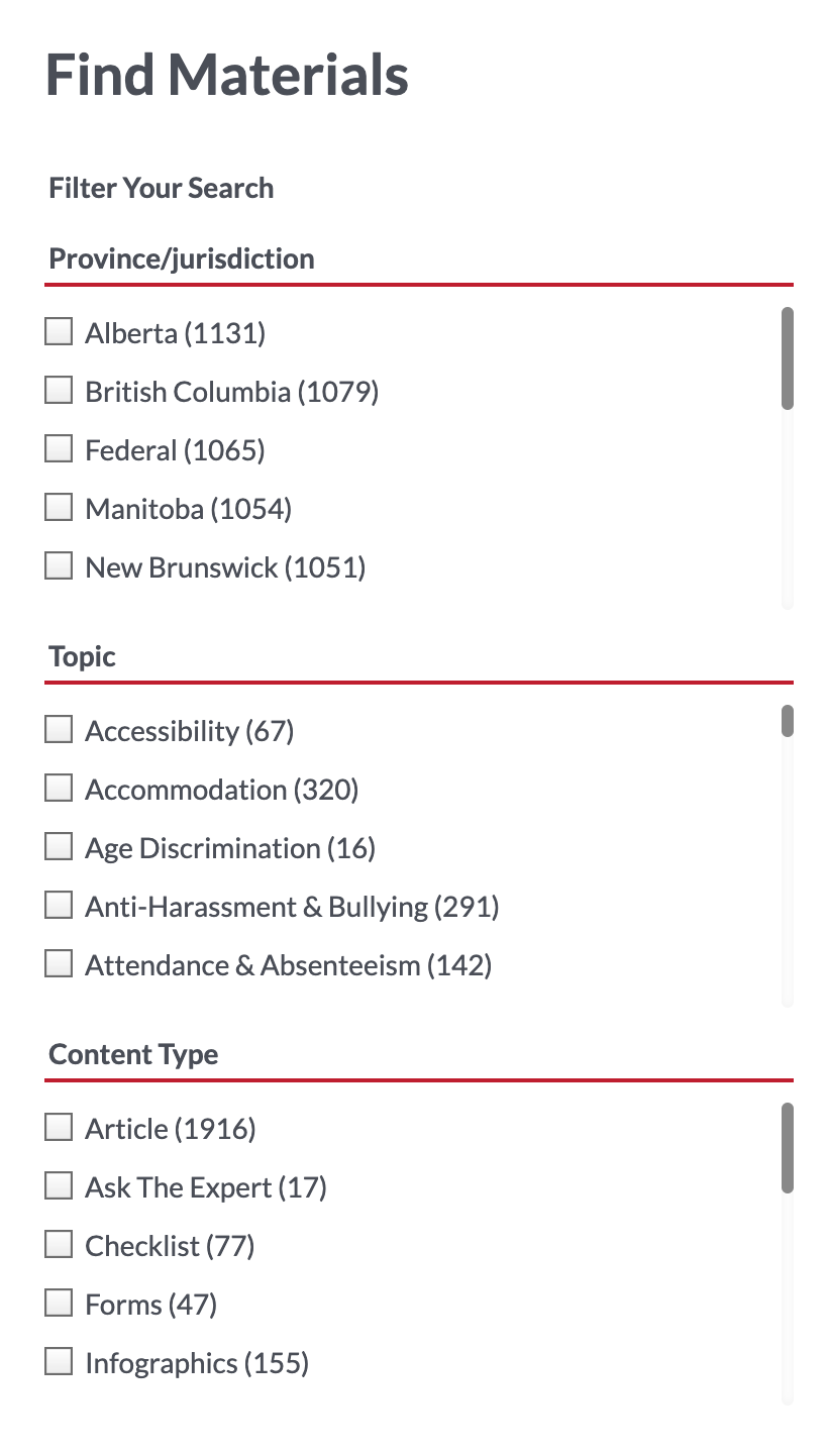 Your results will appear on the search page. To filter your search results even further, use the checkboxes on the left of the screen to choose a jurisdiction, topic or tool.