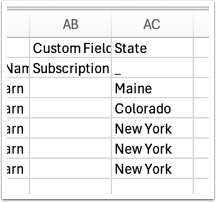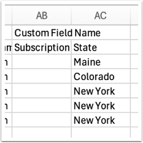 First, copy and paste the custom field (i.e. “State”) into cell AC2.