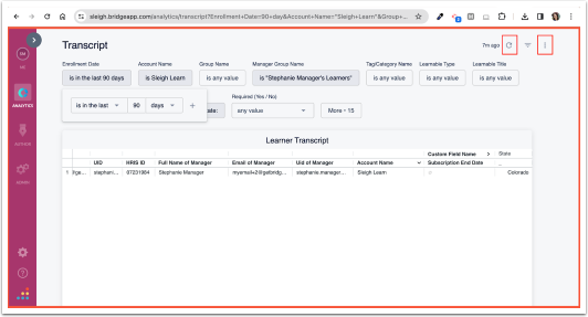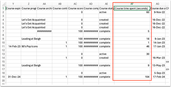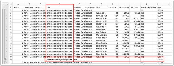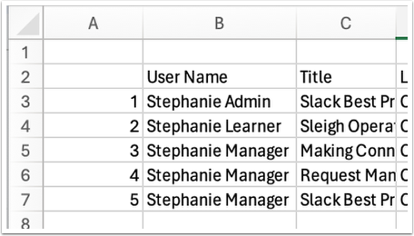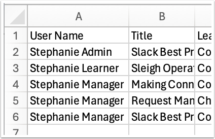 NOTE: If you want to include your time in training, as well, then you’ll need to go to Me > Learning and export your own Transcript to add to this report.