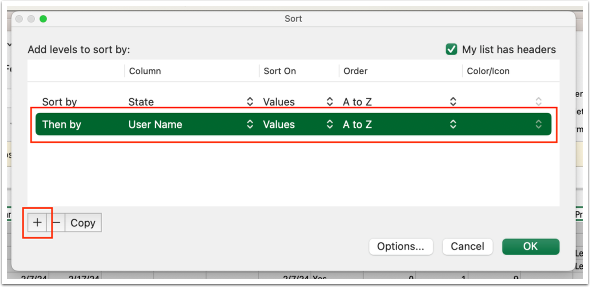 Sort first by “(custom field)” and then by “User Name.”