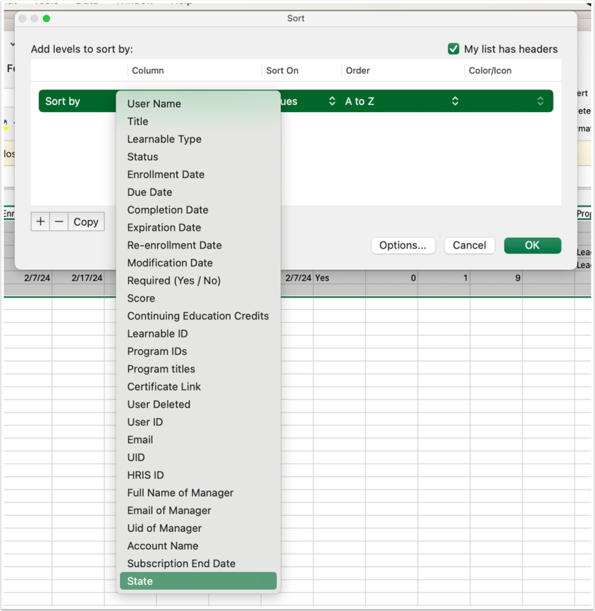 If you have Excel on your computer, the file will open in Excel. If you have an Apple computer (without the Microsoft Office Suite), it will open Apple Numbers. You can import it to a Google Sheet if needed. The rest of these steps are for easy organization and reporting via Excel.