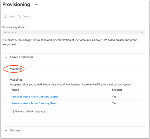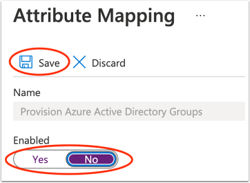 15. Click the Provision Azure Active Directory Groups mapping, disable the mapping, and click Save