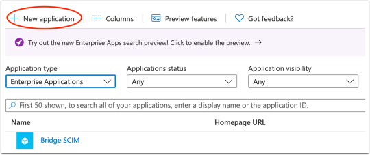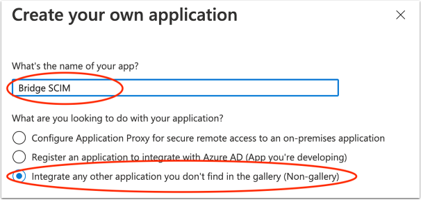 These are step-by-step instructions to create a new enterprise application and configure the provisioning as needed for Bridge.