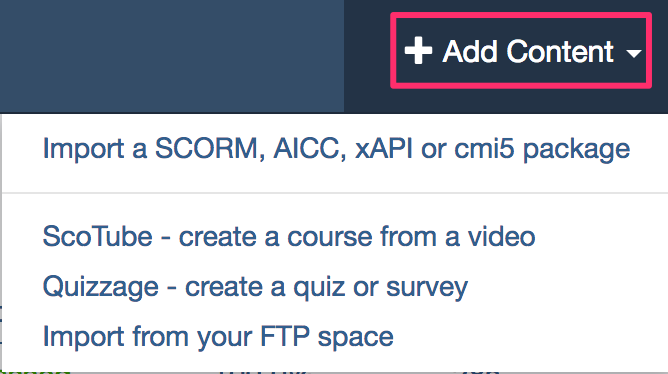 3. Click the Import a SCORM, AICC, xAPI or cmi5 package link