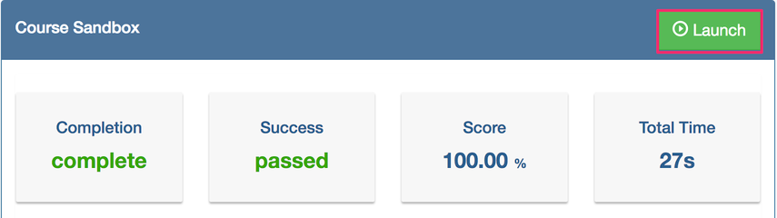 Testing your content is easy. Just click the ‘Launch’ button from inside your course sandbox.