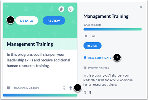 If your course includes a certificate of completion, you can view the certificate after you have completed the course. You can also view the certificate at any time by clicking on View Certificate when looking at your completed learnings list.