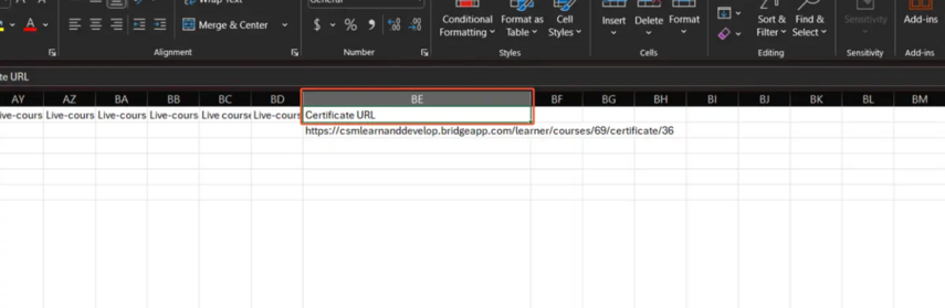 In the CSV file, locate the Certificate URL column