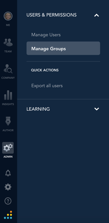 Click on the ADMIN option in the Global Navigation menu. Then click on Manage Groups.